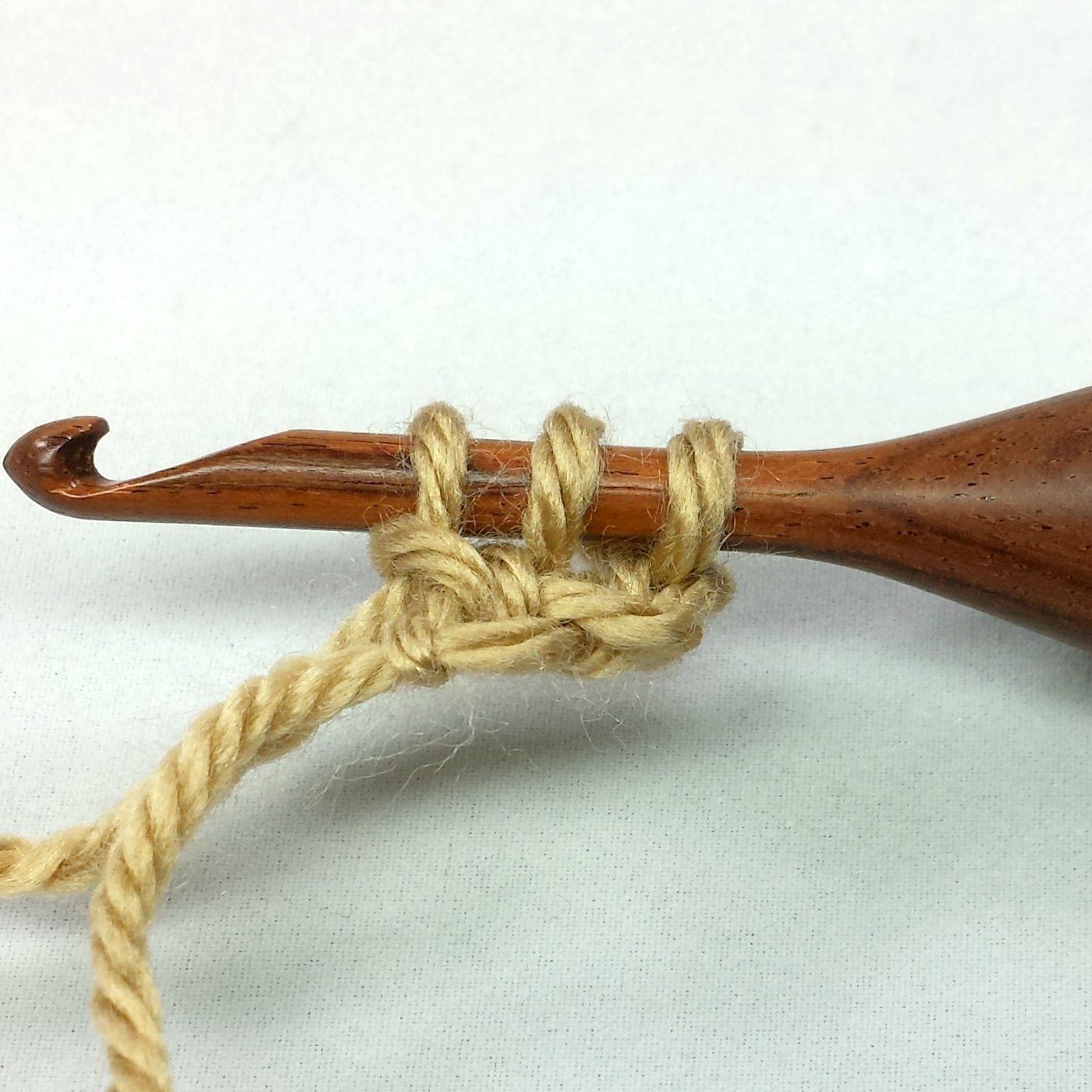 Start with chaining (ch) 3. Yarn over and insert the hook into the first chain you created (3rd chain from the hook), yarn over, and pull up a loop. Now you will have three loops on your hook.