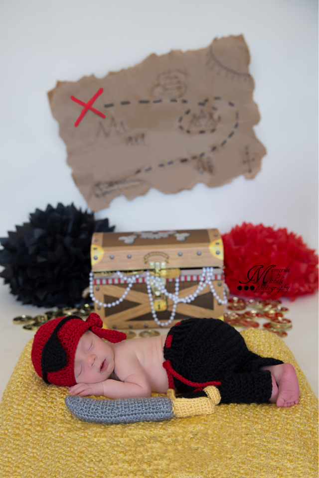 I definitely think one of my best decisions, for my business, has been to send items to a photographer! I had tried previously, but had the hardest time finding somebody who would work with me. I offered discount or free items to all of my local photographers, in exchange for photos, but I either never heard back or got a ‘maybe’. I even sold items, on Etsy, for a discounted price in exchange for photos… that I never received. I was so confused by the fact that a simple trade was so difficult. Till one day, I was looking through the Etsy forums and my teams and a ‘suggested team’ popped up, for a photographer and photo prop trade. I couldn’t believe that I had never searched for one! That is where I met Michele and she has been fantastic! I just mail her any of my items, at no cost, and she sends me back adorable photos. I was wondering if it would make much difference, in my Etsy sales, so I did a little test. Well, I just monitored views and sales with my photos and then with her photos and it made a big difference! How could it not though? Just look at this adorable little pirate!